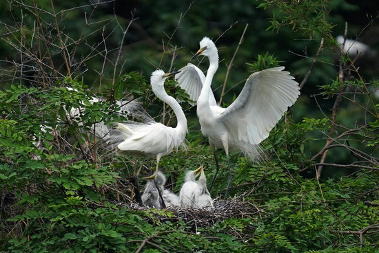 初夏,細雨將空氣蒸騰得有些許悶熱。江西省南昌市青山湖區(qū)的天香園內,成千上萬只鷺鳥卻在一片水杉秘境中,尋得一處寧靜。