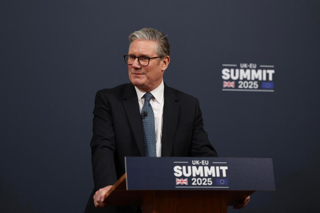 5月19日,英國首相斯塔默在倫敦與歐盟領(lǐng)導(dǎo)人舉行會(huì)議后參加記者會(huì)。新華社發(fā)(英國首相府供圖)