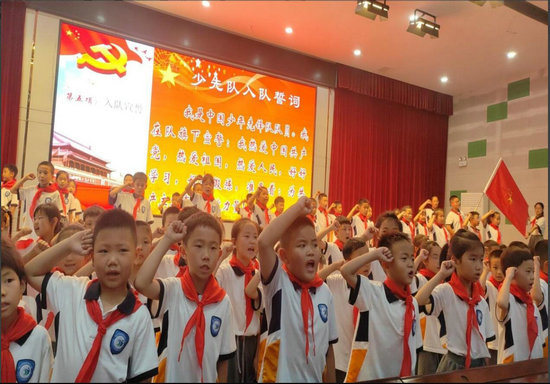 儀式尾聲,全體隊(duì)員在“時(shí)刻準(zhǔn)備著”的呼號(hào)聲中立下報(bào)國(guó)志向。隊(duì)旗在注目禮中緩緩?fù)藞?chǎng),而紅色的種子已在童心深深扎根。
