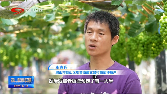 眉山市彭山區(qū)觀音街道文昌村葡萄種植戶 李志巧:現(xiàn)在剛好開始賣,然后就被老板些預(yù)定了有一大半,然后今年的價(jià)格,賣得還比去年的好。