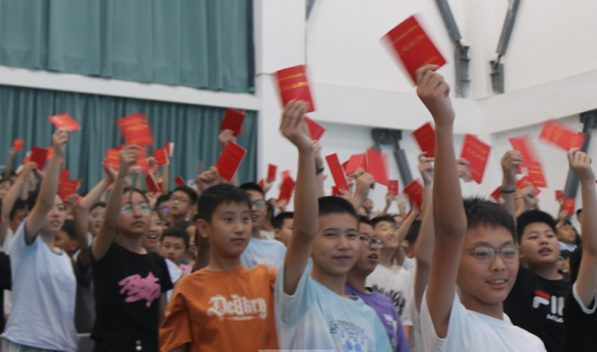 師生同臺(tái)演繹的節(jié)目《在盛夏告別》,以歌舞訴說(shuō)離情,真摯動(dòng)人。最令人動(dòng)容的是六年級(jí)全體教師登臺(tái)贈(zèng)言環(huán)節(jié),老師們眼含熱淚,聲聲叮嚀飽含不舍與期許:“愿你們勇敢前行,老師永遠(yuǎn)為你們加油!”最后,在《綠色的夢(mèng)想》深情校歌合唱中,典禮圓滿落幕,悠揚(yáng)樂(lè)聲里,學(xué)子們帶著祝福有序退場(chǎng)。