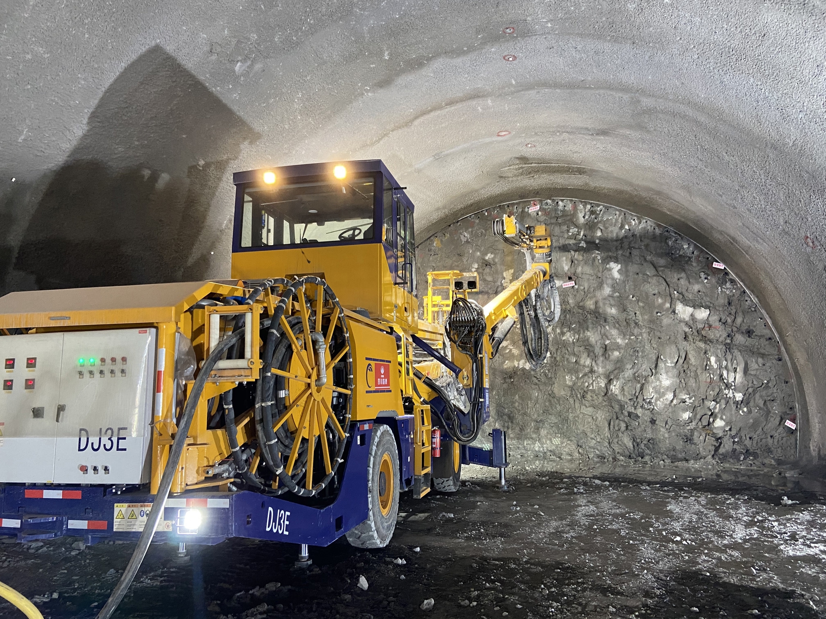 為保障施工安全和工程建設(shè)有序推進(jìn),針對隧道復(fù)雜地質(zhì)特點(diǎn),建設(shè)團(tuán)隊在施工過程中引入三臂鑿巖臺車等先進(jìn)設(shè)備,實現(xiàn)了機(jī)械化換人、自動化減人,大幅度降低勞動強(qiáng)度和安全風(fēng)險;自主研發(fā)“三噴三刮一收面”——噴射混凝土“七步法”施工,有效提升了初支平整度,確保了施工質(zhì)量。