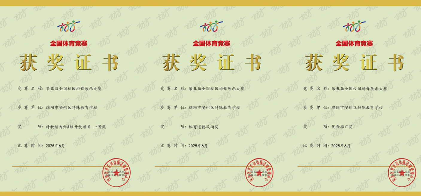 綿陽(yáng)新聞網(wǎng)訊 近日,“陽(yáng)光排舞進(jìn)校園 我的時(shí)代正精彩”第五屆全國(guó)校園排舞網(wǎng)絡(luò)展示大賽圓滿結(jié)束。安州區(qū)特殊教育學(xué)校推送的舞蹈在特教智力組A組開放項(xiàng)目中脫穎而出,以同組別最高得分榮獲一等獎(jiǎng),同時(shí)榮獲體育道德風(fēng)尚獎(jiǎng)和優(yōu)秀推廣獎(jiǎng)。