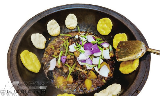 傍晚6時(shí),北川云上石椅六合別院的餐館里,鐵鍋里金黃油亮的雞塊在柴火灶上咕嘟作響,雞肉的香氣混著羌寨花椒的麻味飄出了店門(mén)。食客楊女士夾起一塊帶皮雞肉,聽(tīng)餐館老板介紹,這跑山雞來(lái)自30公里外的北川羌族自治縣曲山鎮(zhèn)沙壩村,吃玉米和蟲(chóng)子長(zhǎng)大。