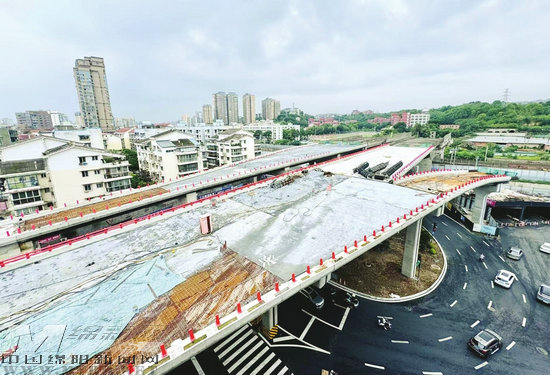 橋下交通已恢復(fù),新的三匯立交橋主體已完工,預(yù)計8月底完成橋面鋪裝,屆時兩條匝道將達到通車條件