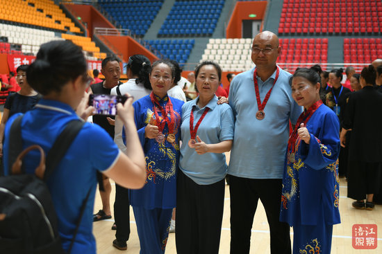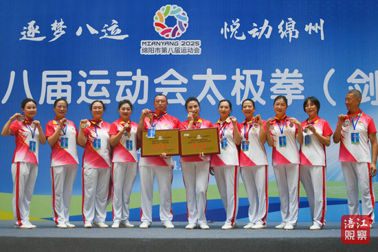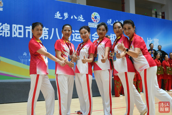 在頒獎(jiǎng)儀式現(xiàn)場(chǎng),記者看到涪城區(qū)代表隊(duì)的隊(duì)員們每個(gè)人身上都掛滿了獎(jiǎng)牌,大家不停地在場(chǎng)館展示拍照,喜悅之情溢于言表。