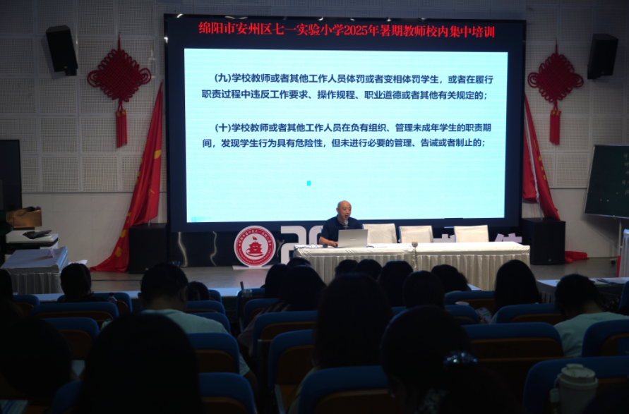 7月3日,安州區(qū)“七一”實驗小學(xué)組織全體教師在學(xué)術(shù)廳舉行了2025年暑期安全培訓(xùn)活動,進一步提升教師的安全意識和應(yīng)急處置能力,為教育教學(xué)工作筑牢安全防線。