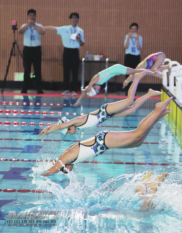 隨著發(fā)令哨響,泳池瞬間沸騰。選手們按組別依次躍入水中,手臂奮力劃動,水花向兩側(cè)翻涌。泳池中速度與激情的碰撞,讓現(xiàn)場觀眾目不暇接,掌聲、歡呼聲此起彼伏。