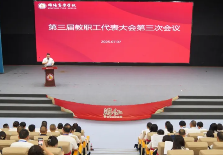 綿陽(yáng)新聞網(wǎng)訊 為了提升學(xué)校治理能力,筑牢民主管理基石,激發(fā)教職工當(dāng)家作主的責(zé)任感與使命感,凝聚協(xié)同發(fā)展合力,7月7日,綿陽(yáng)富樂學(xué)校舉行了以“聚智匯力謀發(fā)展,凝心篤行譜新篇”為主題的2025年第三屆教職工代表大會(huì)第三次會(huì)議。該校領(lǐng)導(dǎo)班子成員,各學(xué)部、部門負(fù)責(zé)人及教職工代表齊聚一堂,圍繞學(xué)校發(fā)展規(guī)劃、教育教學(xué)改革等核心議題展開深入研討,共探高質(zhì)量發(fā)展新路徑。
