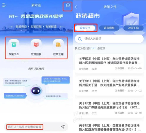 臨港新片區(qū)匯聚了海量創(chuàng)新型企業(yè),政策紅利是其發(fā)展的關(guān)鍵助推器。然而,面對(duì)各級(jí)各類惠企政策,傳統(tǒng)查詢方式往往效率低下、信息滯后。“政策AI”助手的誕生,滿足了企業(yè)用戶高效查詢政策、及時(shí)掌握政策動(dòng)態(tài)的迫切需求。通過精準(zhǔn)語(yǔ)義理解與多輪問答能力,用戶無(wú)需使用刻板的關(guān)鍵詞,而是可以用自然語(yǔ)言(如“我是一家集成電路企業(yè),在臨港可以享受哪些優(yōu)惠政策?”)進(jìn)行提問;同時(shí),憑借政策關(guān)聯(lián)與智能匹配能力,通過智能識(shí)別并推薦關(guān)聯(lián)政策,可幫助用戶發(fā)現(xiàn)忽略的潛在支持點(diǎn),實(shí)現(xiàn)政策的“精準(zhǔn)滴灌”。