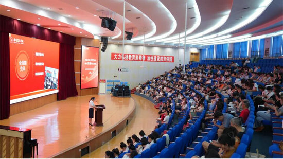 隨后,梁春艷立足當(dāng)前教育發(fā)展大勢,客觀剖析了學(xué)校面臨的機(jī)遇與挑戰(zhàn),直指發(fā)展中的短板弱項(xiàng)并提出系統(tǒng)性解決方案。她著重強(qiáng)調(diào),這份亮眼答卷的每一頁都浸透著全體教師的心血與汗水,她寄語全體教職工,要以教育家精神為引領(lǐng),深耕課堂主陣地、厚植愛生情懷,在新學(xué)年錨定目標(biāo)、勇毅篤行,續(xù)寫追光逐夢(mèng)的嶄新篇章。