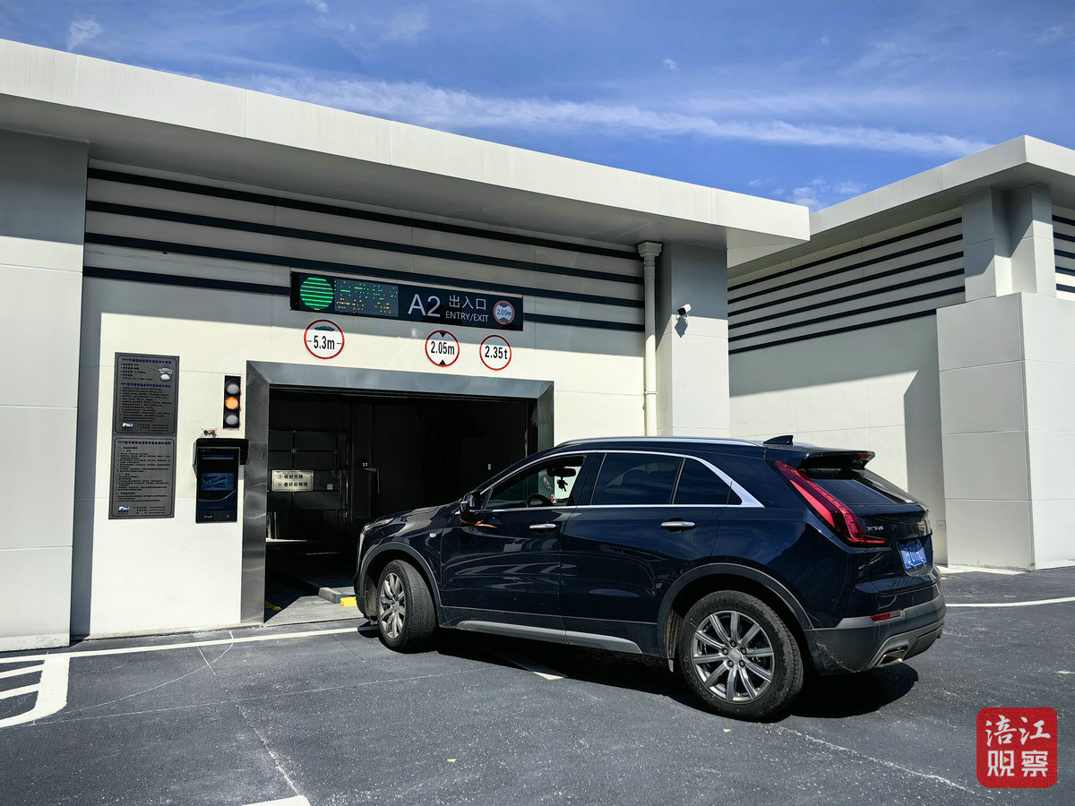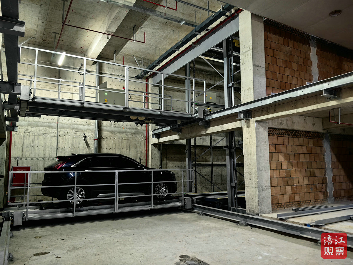 記者搶先體驗了這套地下自動停車系統(tǒng)。存車時,只需將車駛?cè)虢诸^公園旁的地面車庫。在入口處,可通過刷臉或輸入車牌完成確認(rèn),車主鎖好車門離開后,系統(tǒng)隨即啟動:升降機(jī)穩(wěn)穩(wěn)托起車輛下放至地下,車輛如同乘上專屬電梯,在自動搬運(yùn)軌道和橫移裝置的協(xié)作下,精準(zhǔn)滑入預(yù)定車位。 短短1分鐘,泊車即告完成。