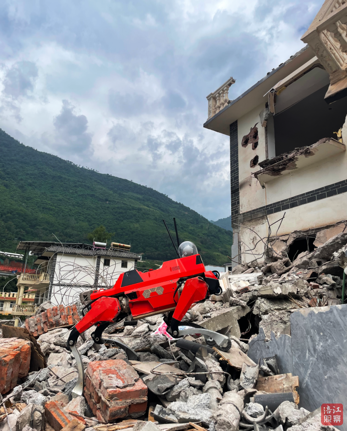 在現(xiàn)場(chǎng),這只顏色鮮艷、形似機(jī)械獵犬的小家伙在工作人員的操作下,靈活穿梭于復(fù)雜地形,無(wú)需等待開辟安全通道或加固墻體,便能敏捷攀爬瓦礫堆,靈活穿越鋼筋障礙,迅速進(jìn)入受損建筑內(nèi)部。
