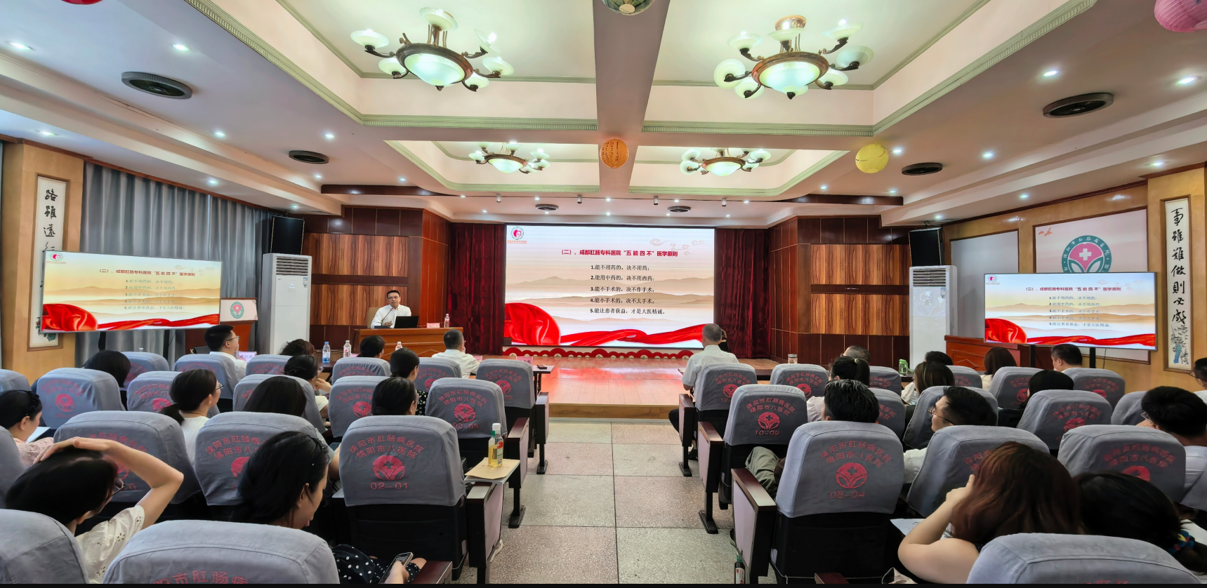 當天,四川省十大名中醫(yī)楊向東在綿陽市第八人民醫(yī)院肛腸科開展查房、會診,并向該院醫(yī)護人員及綿陽市肛腸??漆t(yī)生作了主題為“以新質(zhì)生產(chǎn)力理論為指導,守正大醫(yī)精誠思想,創(chuàng)新發(fā)展特色優(yōu)勢專科”的學術(shù)報告。楊向東在報告中圍繞中醫(yī)肛腸學科建設(shè)、特色優(yōu)勢與發(fā)展路徑,分享了前沿理念和臨床診療經(jīng)驗。
