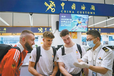 “世運會期間正值暑運高峰,成都天府國際機場出入境人數(shù)較平常增加了1.5倍,我們優(yōu)化了智能檢查通道,保障旅客快捷通關;還開設了世運會專用窗口,為涉賽人員提供通關、咨詢等‘一站式’服務。”成都海關相關負責人薛珂說。據(jù)了解,8月3日至18日是成都世運會官方抵離服務期,預計將有超過5000名涉賽人員從成都天府國際機場等口岸通關。