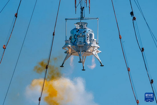 攬月月面著陸器在地外天體著陸試驗場進(jìn)行測試(資料照片)。新華社發(fā)(張斌 攝)