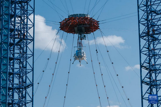 新華社河北懷來8月7日電(李國利、鄧孟)攬月月面著陸器著陸起飛綜合驗證試驗,6日在位于河北省懷來縣的地外天體著陸試驗場圓滿完成。