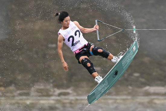 8月10日,中國(guó)選手徐露在2025年成都世運(yùn)會(huì)女子尾波滑水自由式?jīng)Q賽中。新華社記者 陳振海 攝