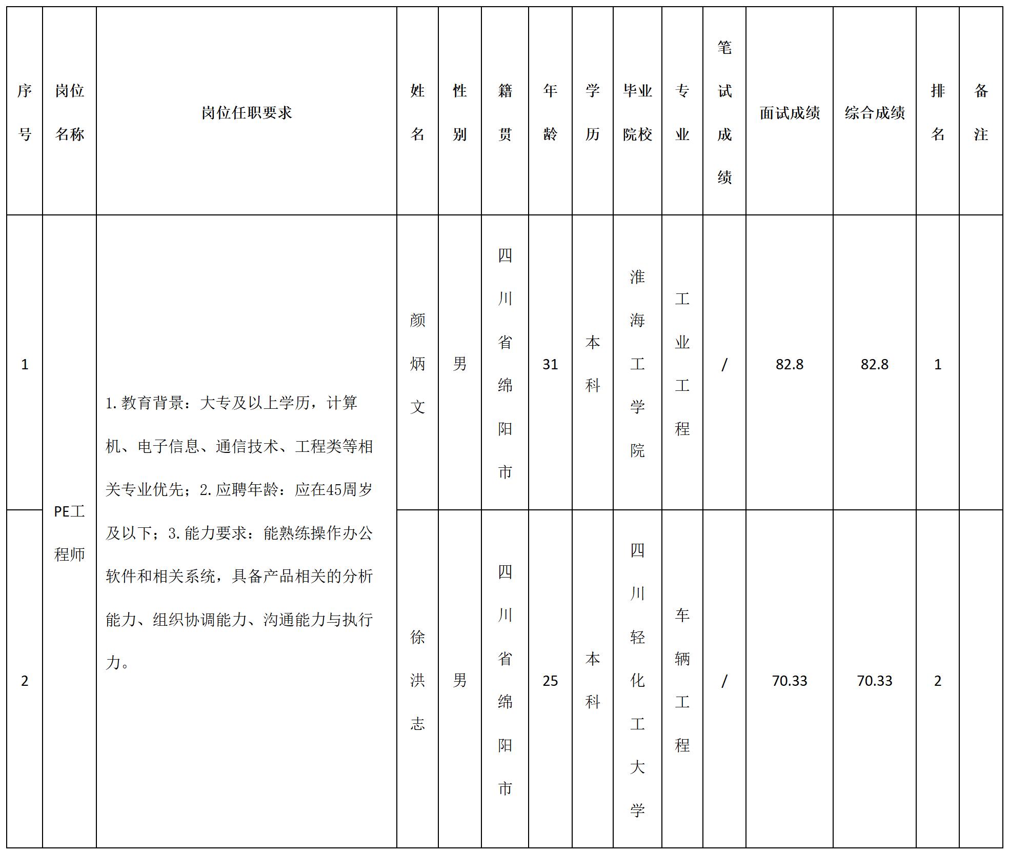 根據(jù)四川九州電子科技股份有限公司發(fā)布的招聘公告及招聘相關規(guī)定,經(jīng)筆試、面試等程序,現(xiàn)將筆試(面試)成績予以公示。