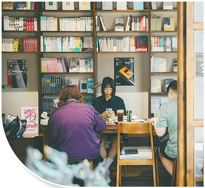 游客在東南邑歷史文化街區(qū)一葦書坊閱讀。