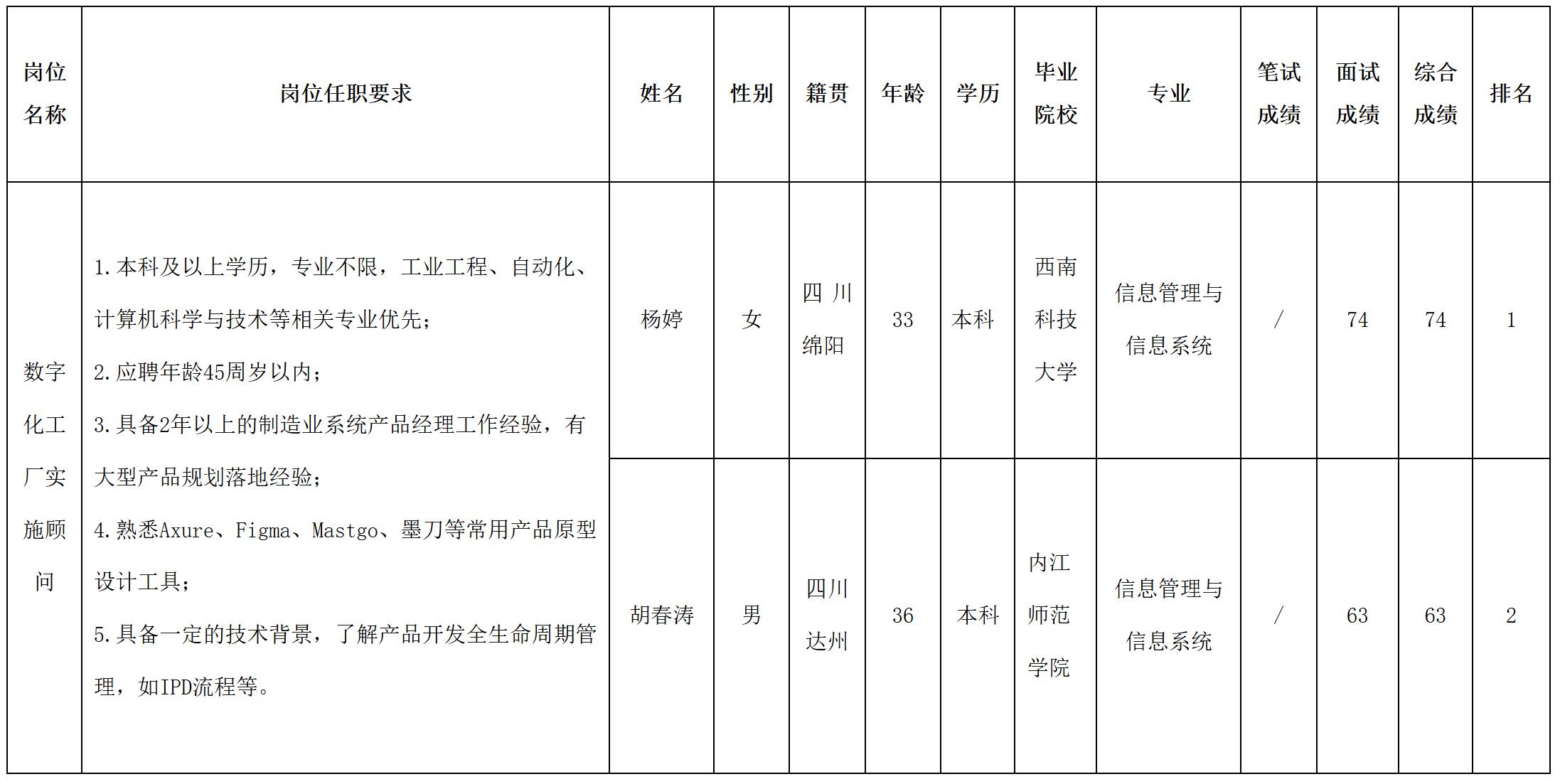 根據(jù)四川虹信軟件股份有限公司發(fā)布的招聘公告及招聘相關(guān)規(guī)定,經(jīng)面試等程序,現(xiàn)將面試成績予以公示。