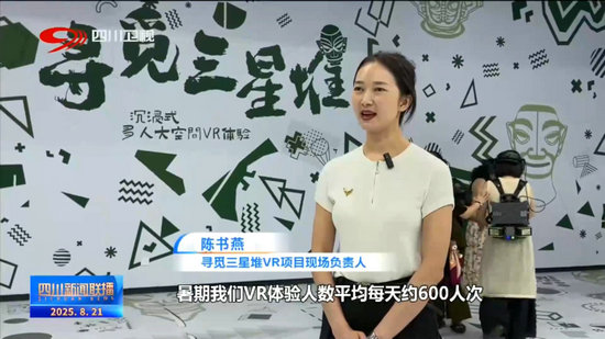 尋覓三星堆VR項目現(xiàn)場負責人 陳書燕:暑期我們VR體驗人數(shù)平均每天約600人次,游客可以自由觸摸文物并且可以360度觀看文物細節(jié),沉浸感和互動感拉滿,科技感十足。