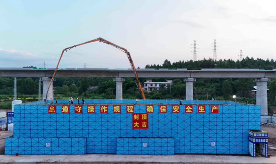 記者從長(zhǎng)江沿岸鐵路集團(tuán)四川有限公司獲悉,8月21日7時(shí)許,隨著最后一方混凝土澆筑,由中國(guó)中鐵電氣化局集團(tuán)參建的成都至重慶中線高速鐵路(以下簡(jiǎn)稱(chēng)成渝中線高鐵)四川段首座牽引變電所順利封頂,標(biāo)志著成渝中線高鐵四川段“四電”工程正式進(jìn)入攻堅(jiān)階段,為后續(xù)啟動(dòng)聯(lián)調(diào)聯(lián)試奠定了堅(jiān)實(shí)基礎(chǔ)。