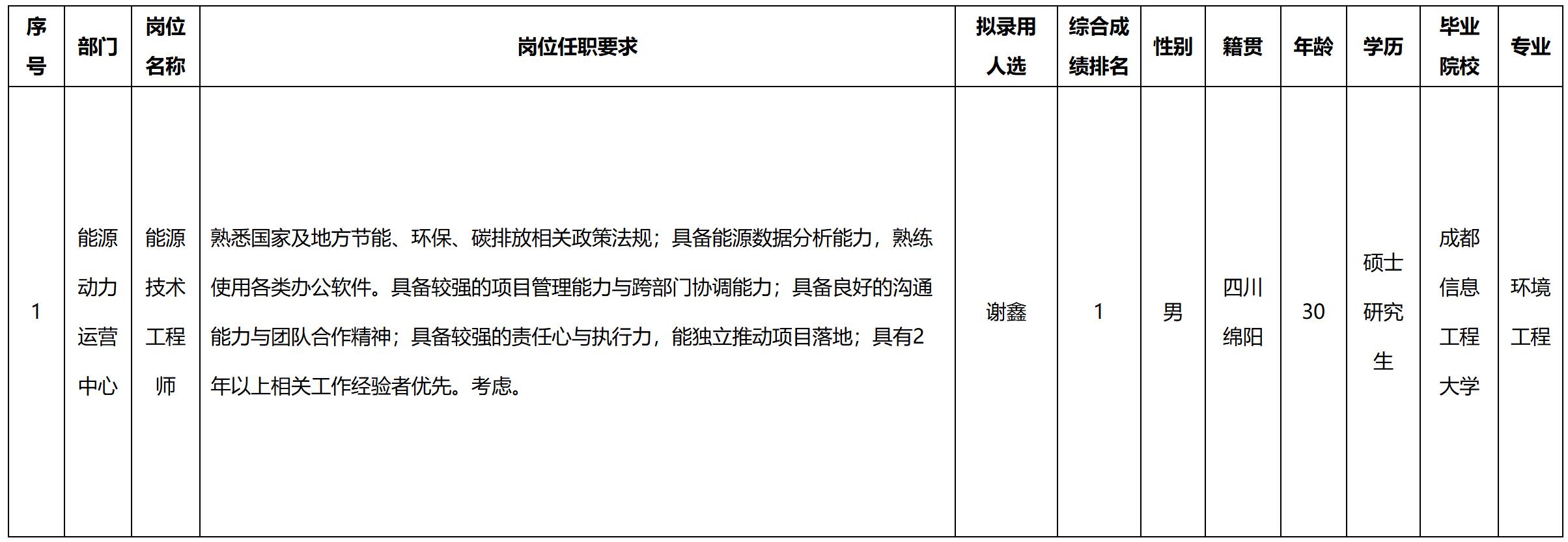 根據(jù)四川長虹電器股份有限公司發(fā)布的招聘公告及招聘相關(guān)規(guī)定,經(jīng)筆試、面試、考察、體檢等程序,擬錄用謝鑫同志到能源動力運營中心工作,現(xiàn)予以公示,具體情況如下: