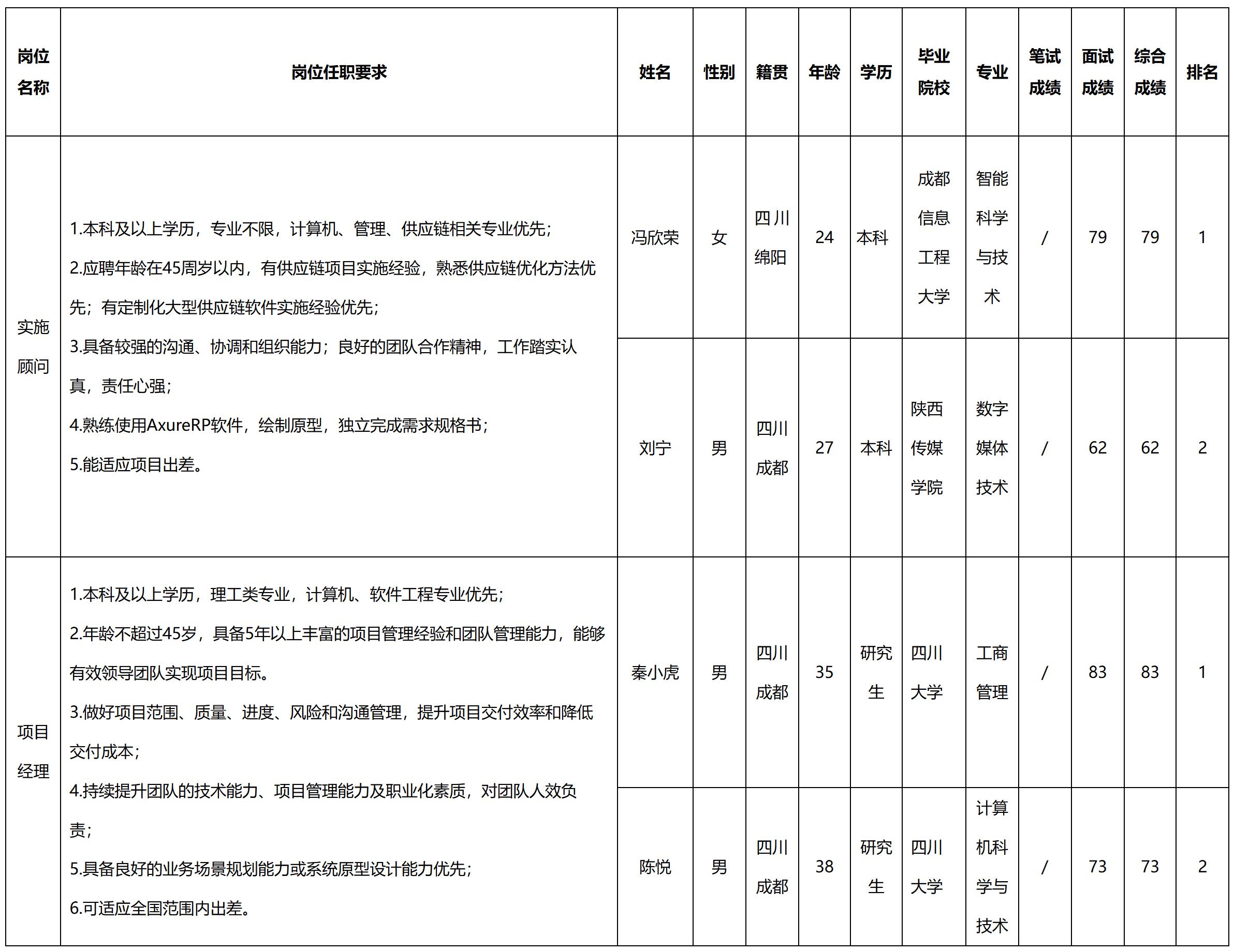 根據(jù)四川虹信軟件股份有限公司發(fā)布的招聘公告及招聘相關(guān)規(guī)定,經(jīng)面試等程序,現(xiàn)將面試成績予以公示。
