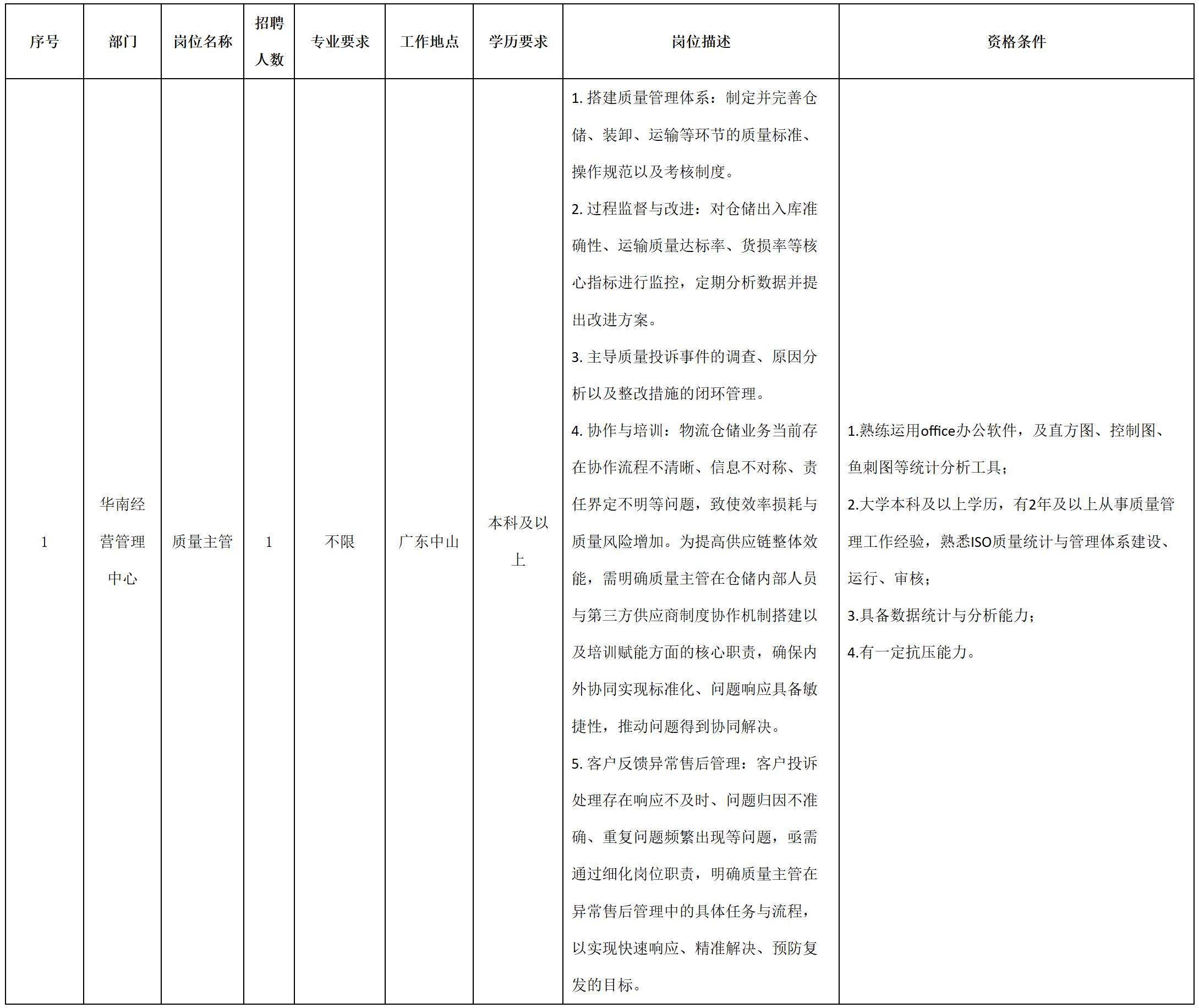 根據(jù)公司經營管理需要,本崗位僅集團外部招聘。