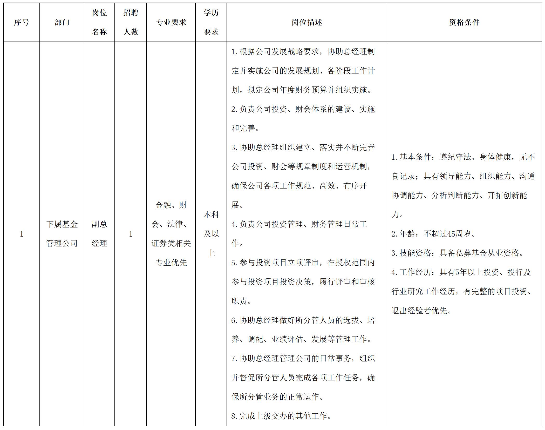 現(xiàn)根據(jù)經(jīng)營管理需要,公開選聘下屬基金管理公司副總經(jīng)理一名(基層干部,工作地點(diǎn):成都):