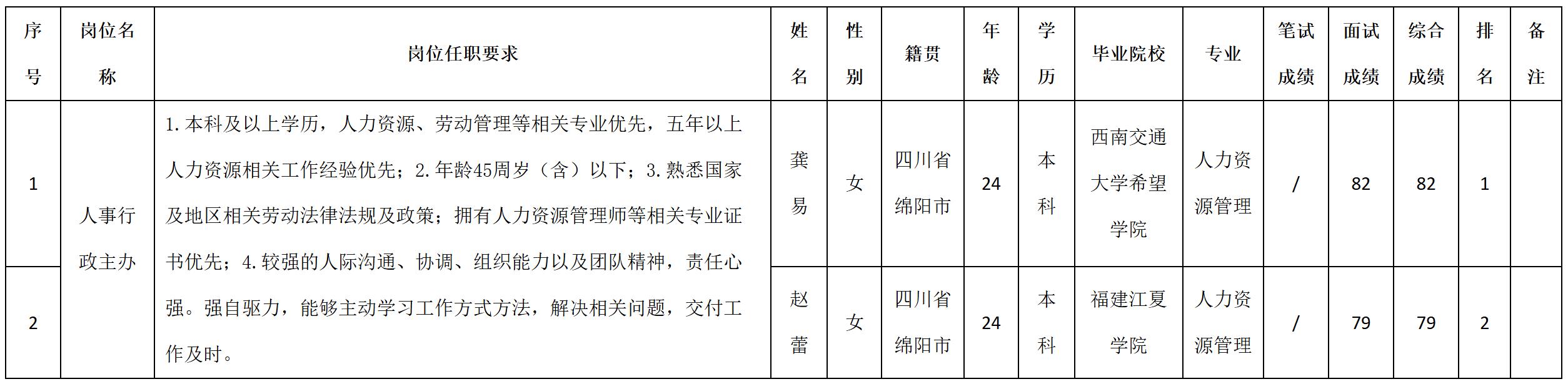 根據(jù)四川安和精密電子電器股份有限公司發(fā)布的招聘公告及招聘相關(guān)規(guī)定,經(jīng)筆試、面試等程序,現(xiàn)將筆試(面試)成績予以公示。