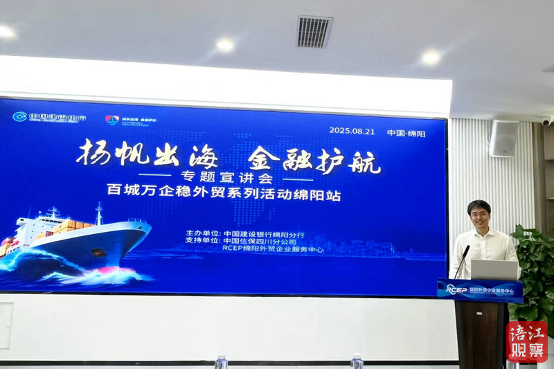 8月21日,在綿陽市商務局、中國人民銀行綿陽市分行、國家外匯管理局綿陽市分局的指導下,中國建設銀行綿陽分行、中國出口信用保險公司四川分公司、RCEP綿陽外貿企業(yè)服務中心聯(lián)合開展“揚帆出海 金融護航——百城萬企穩(wěn)外貿系列活動綿陽站”暨“綿動全球”外貿沙龍活動(第十二期)——“保穩(wěn)提質 助力川品出海——蜀企揚帆·銀保同行”、2025年“聚匯綿州”制造業(yè)及科技客群匯率避險培訓會。