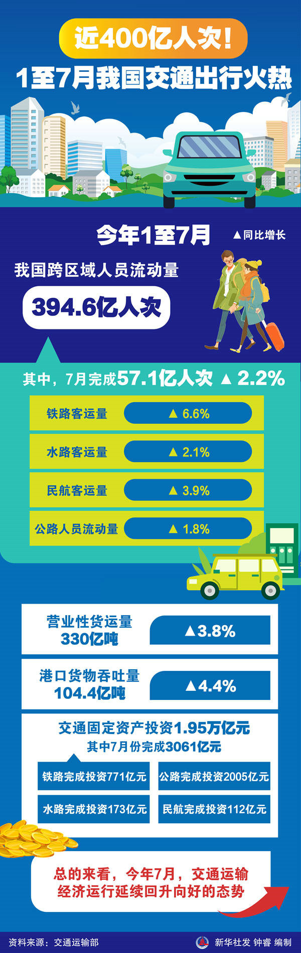 “總的來看,今年7月,交通運(yùn)輸經(jīng)濟(jì)運(yùn)行延續(xù)回升向好的態(tài)勢(shì)。”李穎說。