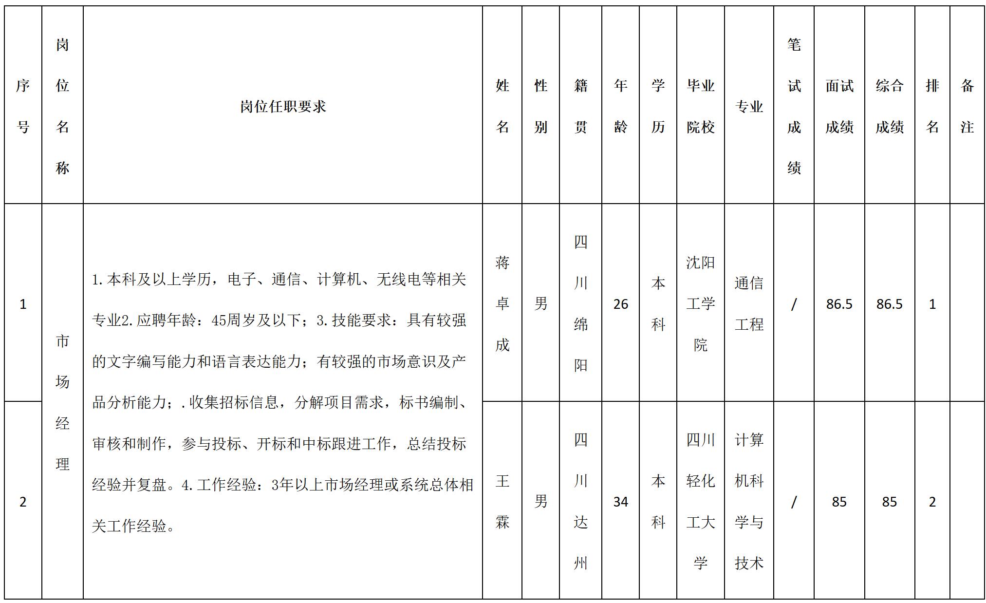 根據(jù)四川九洲防控科技有限責(zé)任公司發(fā)布的招聘公告及招聘相關(guān)規(guī)定,經(jīng)筆試、面試等程序,現(xiàn)將筆試(面試)成績(jī)予以公示。