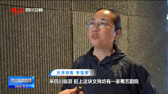 天津游客 李寶榮:來四川旅游,趕上這塊文殊坊有一家蜀藝劇院,給我非常(大)的震撼。他們的演出質(zhì)量是非常棒的,演員非常專業(yè),互動感很強(qiáng)的,里邊的蓋碗茶也非常地香。