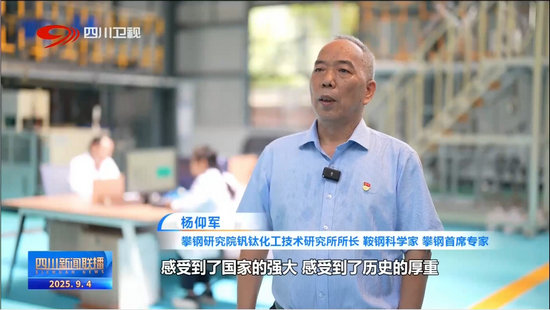 攀鋼研究院釩鈦化工技術(shù)研究所所長(zhǎng)、鞍鋼科學(xué)家、攀鋼首席專(zhuān)家 楊仰軍:感受到了國(guó)家的強(qiáng)大,感受到了歷史的厚重,更讓我們感覺(jué)到了所肩負(fù)的責(zé)任。我將立足本職崗位,加速推進(jìn)釩鈦產(chǎn)業(yè)科技攻關(guān),讓更多的釩鈦產(chǎn)品能夠應(yīng)用于國(guó)防重器,為實(shí)現(xiàn)科技自立自強(qiáng)接續(xù)奮斗。