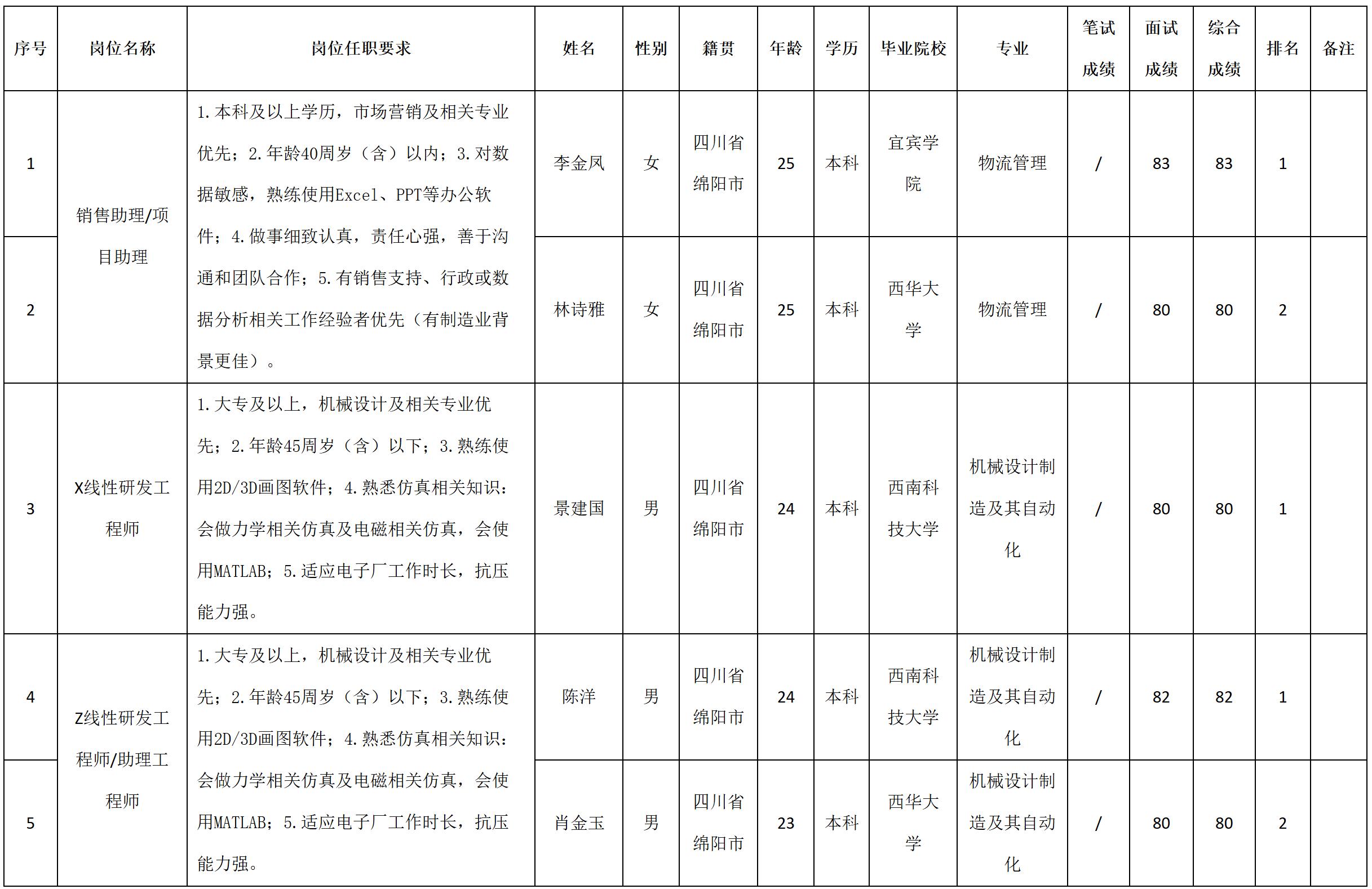 根據(jù)四川安和精密電子電器股份有限公司發(fā)布的招聘公告及招聘相關(guān)規(guī)定,經(jīng)筆試、面試等程序,現(xiàn)將筆試(面試)成績予以公示。