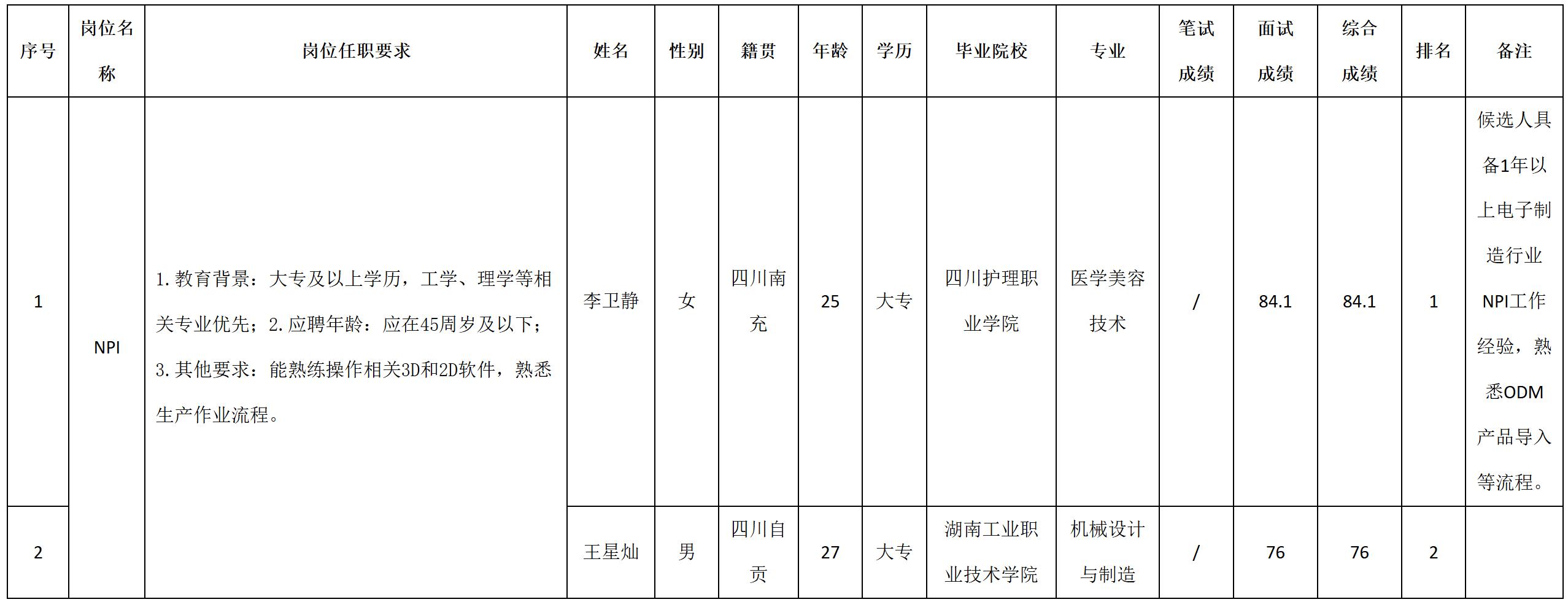 根據(jù)四川九州電子科技股份有限公司發(fā)布的招聘公告及招聘相關(guān)規(guī)定,經(jīng)筆試、面試等程序,現(xiàn)將筆試(面試)成績予以公示。