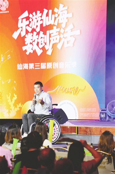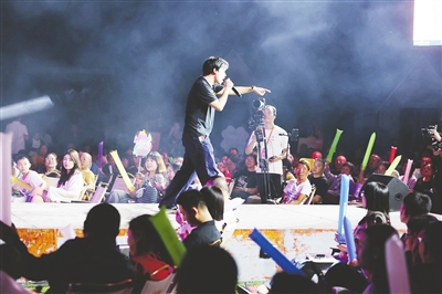 本報(bào)訊(曾云 記者 胥江 劉曾太 文/圖)9月19日晚,仙海廣場(chǎng)中心的全民造星舞臺(tái)四周座無虛席,不少市民與游客早早到場(chǎng),等候聆聽來自各地的原創(chuàng)歌曲。當(dāng)晚,10組選手登臺(tái)獻(xiàn)唱原創(chuàng)作品,仙海廣場(chǎng)也成為歌手們?cè)瓌?chuàng)新歌的首發(fā)陣地。