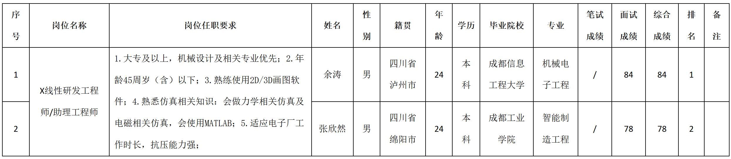 根據四川安和精密電子電器股份有限公司發(fā)布的招聘公告及招聘相關規(guī)定,經筆試、面試等程序,現(xiàn)將筆試(面試)成績予以公示。