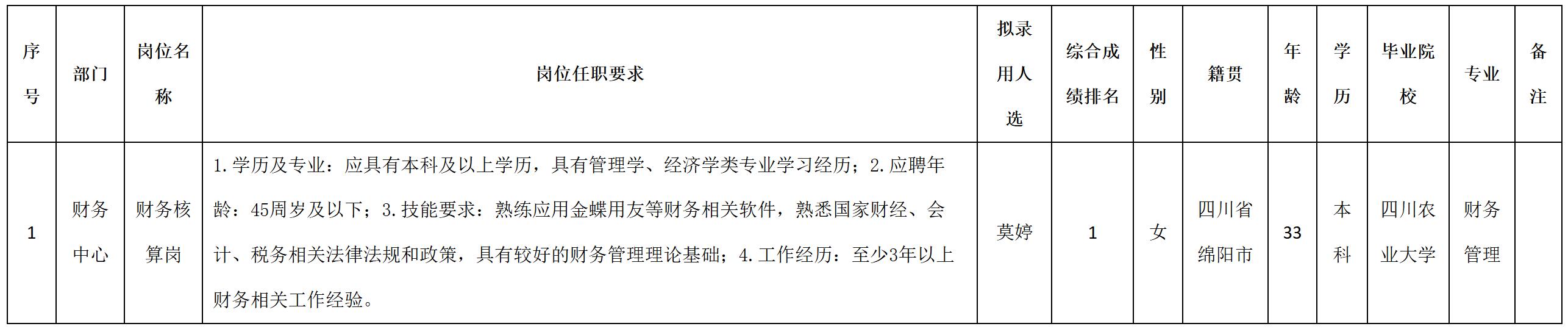 根據四川九州光電子技術有限公司發(fā)布的招聘公告及招聘相關規(guī)定,經筆試、面試、考察、體檢等程序,擬錄用莫婷同志到四川九州光電子技術有限公司工作,現(xiàn)予以公示,具體情況如下: