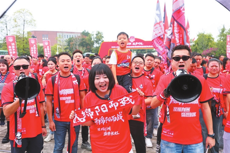 儀式尚未開始,黨校內已被熱烈氛圍籠罩。球迷們難掩激動,臉上滿是期待與興奮。“從聯賽官宣起就盼著這一天,客場再遠也要去!”身著綿陽隊紅色助威服的球迷王磊舉起印有“綿陽雄起”的頭巾,聲音里滿是歡欣,“咱們球迷就是球隊的‘第十二人’,要讓隊員們在客場也能聽到家鄉(xiāng)的聲音。”