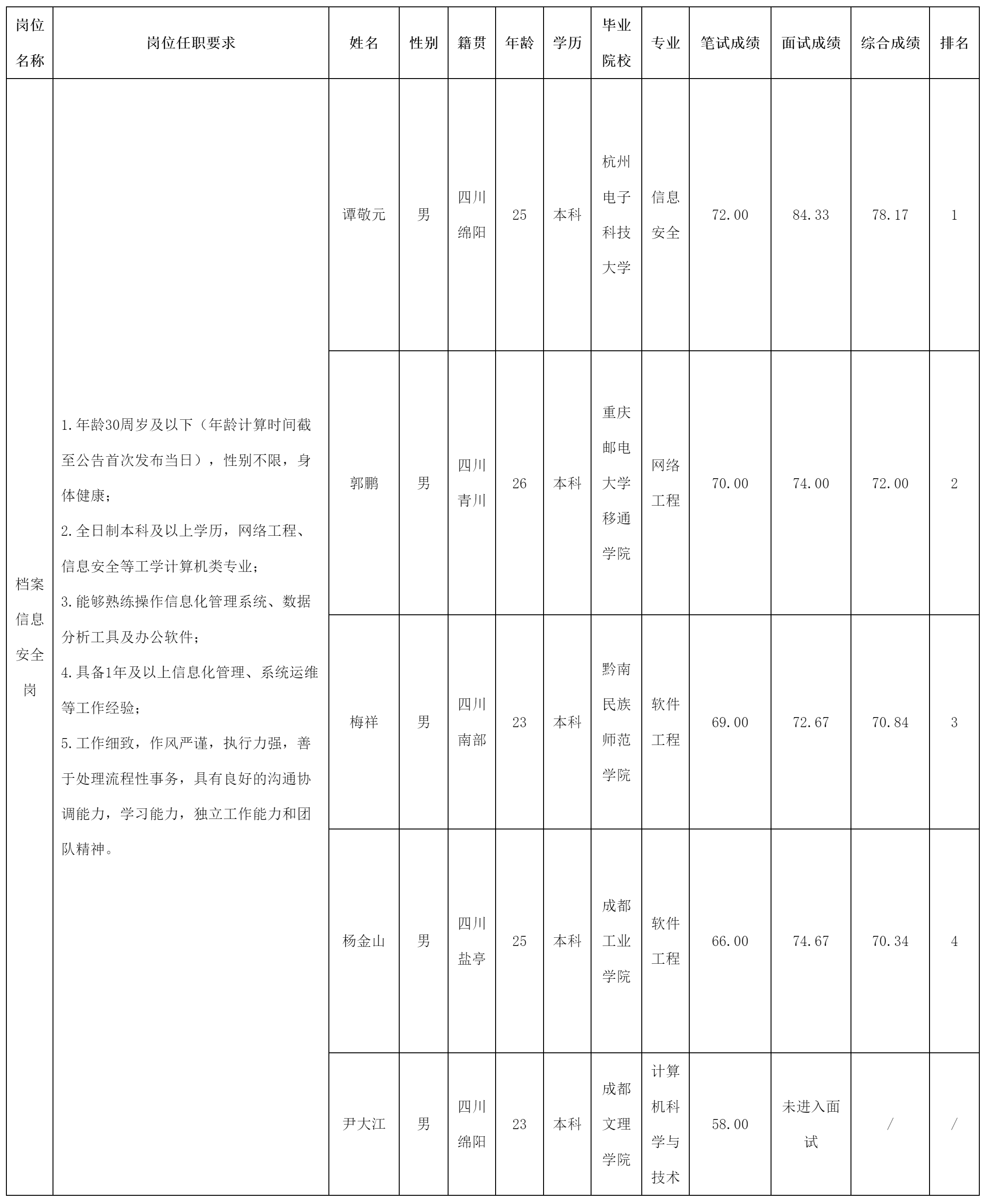 根據(jù)綿陽市綿投商業(yè)運營管理有限責(zé)任公司發(fā)布的招聘公告及招聘相關(guān)規(guī)定,經(jīng)筆試、面試等程序,現(xiàn)將筆試(面試)成績予以公示。