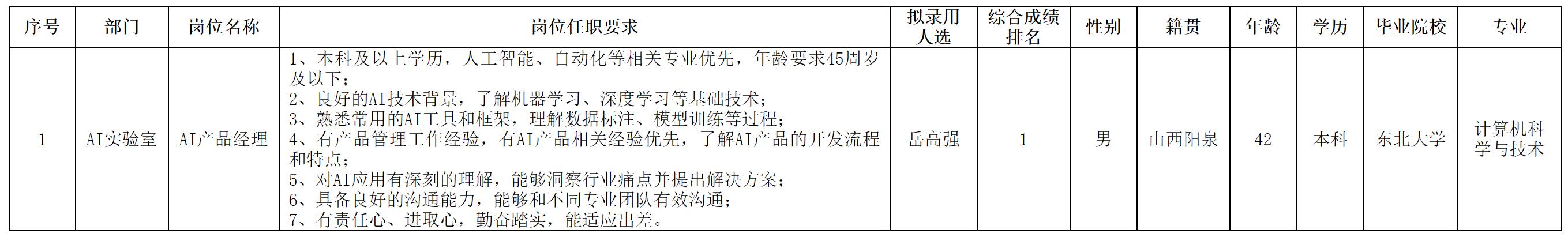 根據(jù)四川長(zhǎng)虹虹微科技有限公司發(fā)布的招聘公告及招聘相關(guān)規(guī)定,經(jīng)面試、考察等程序,擬錄用岳高強(qiáng)同志到四川長(zhǎng)虹虹微科技有限公司工作,現(xiàn)予以公示,具體情況如下: