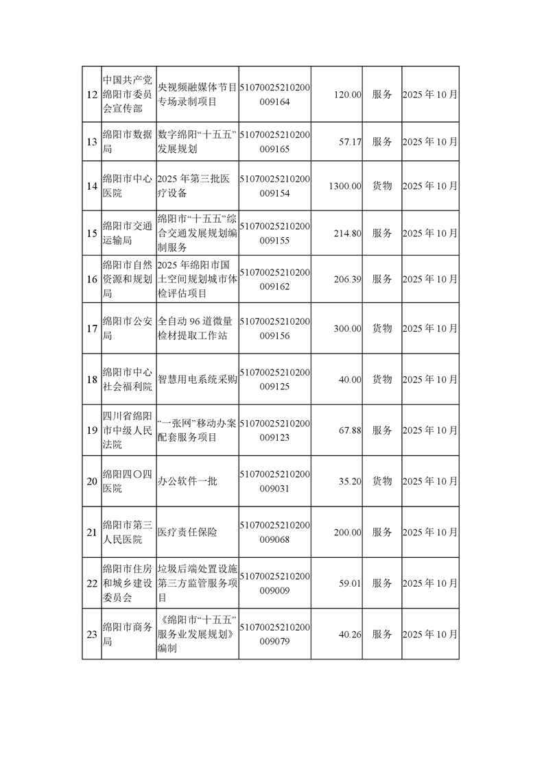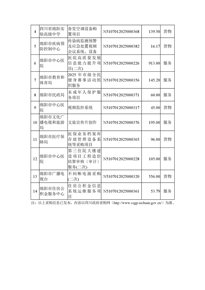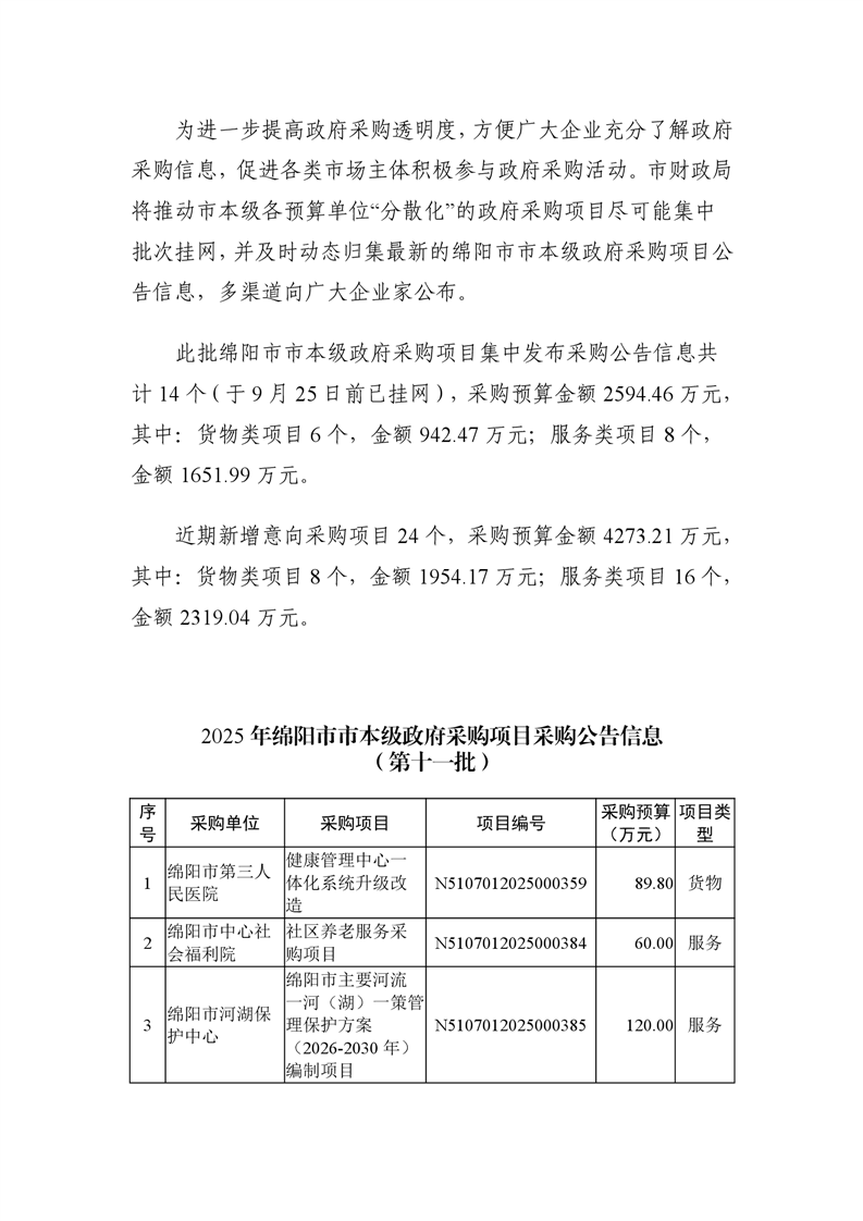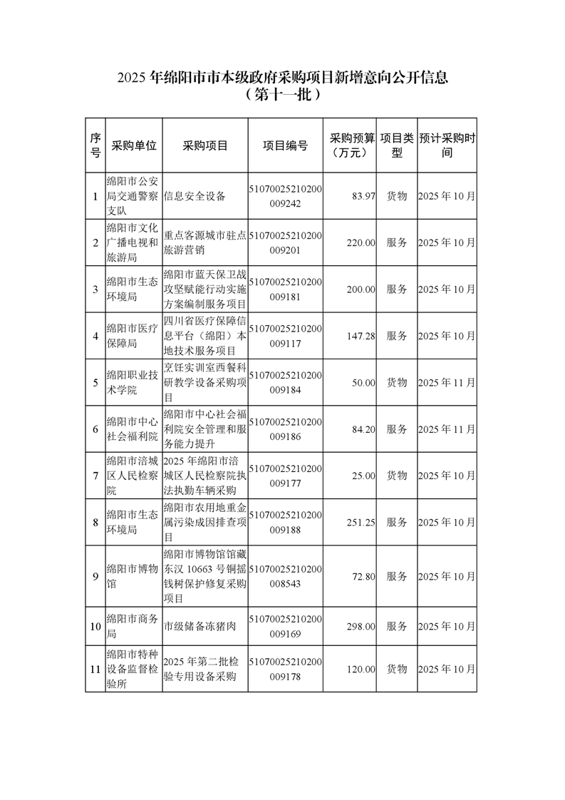 38個(gè)政府采購(gòu)項(xiàng)目的“機(jī)會(huì)清單”出爐?。?025年第十一批)綿陽(yáng)市市本級(jí)政府采購(gòu)項(xiàng)目信息動(dòng)態(tài)(2025年第十一波)