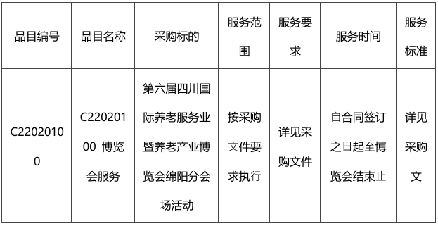 二、項(xiàng)目名稱:第六屆四川國際養(yǎng)老服務(wù)業(yè)暨養(yǎng)老產(chǎn)業(yè)博覽會綿陽分會場活動