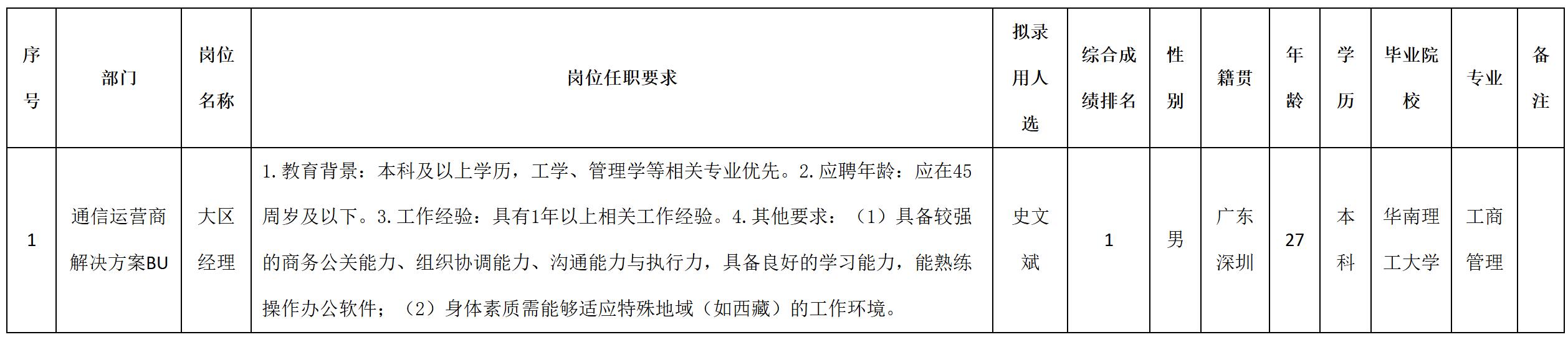 根據(jù)四川九州電子科技股份有限公司發(fā)布的招聘公告及招聘相關(guān)規(guī)定,經(jīng)測試、考察、體檢等程序,擬錄用史文斌同志到四川九州電子科技股份有限公司工作,現(xiàn)予以公示,具體情況如下: