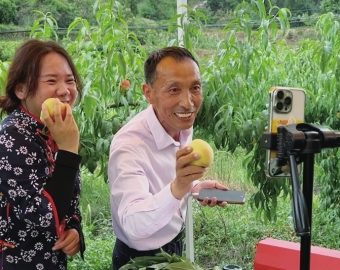近日,三臺縣古井鎮(zhèn)黃桃果園里迎來一場特別的“田間課堂”——翠綠的枝葉間,粉白透紅的水蜜桃掛滿枝頭,百余名學員舉著手機支架穿梭其間,在助農“直播團”導師的指導下,將鏡頭聚焦累累碩果,實地操練直播帶貨。 [