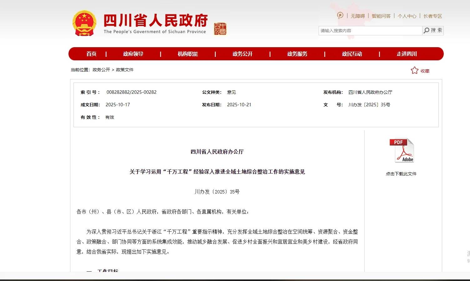 10月21日,四川省人民政府辦公廳印發(fā)《關(guān)于學(xué)習(xí)運(yùn)用“千萬工程”經(jīng)驗(yàn)深入推進(jìn)全域土地綜合整治工作的實(shí)施意見》(以下簡稱《實(shí)施意見》),旨在充分發(fā)揮全域土地綜合整治效能,推動(dòng)城鄉(xiāng)融合發(fā)展、促進(jìn)鄉(xiāng)村全面振興與宜居宜業(yè)和美鄉(xiāng)村建設(shè)?!秾?shí)施意見》為未來幾年四川全域土地..[